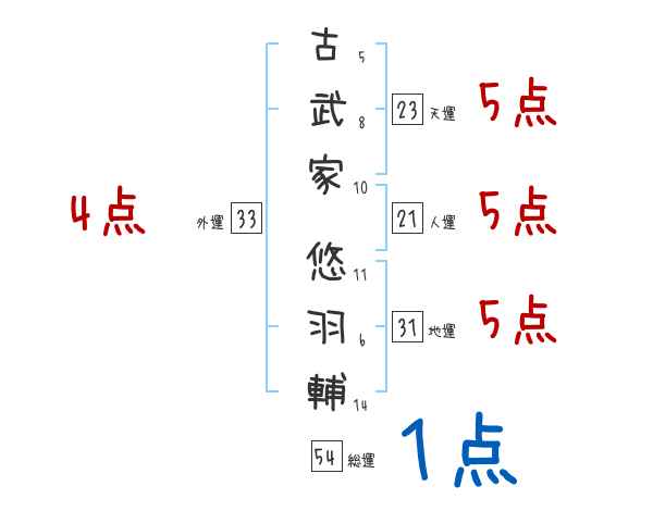 古武家悠羽輔さんの画数の鑑定結果