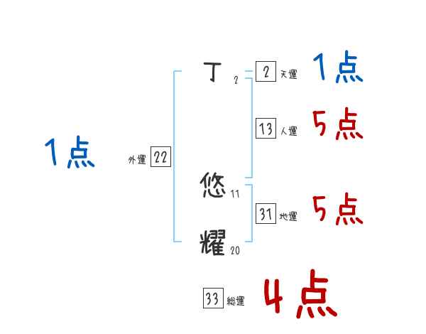 丁悠耀さんの画数の鑑定結果