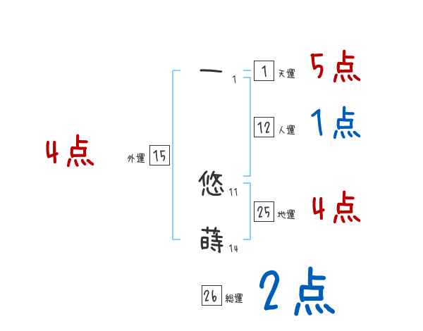 一悠蒔さんの画数の鑑定結果