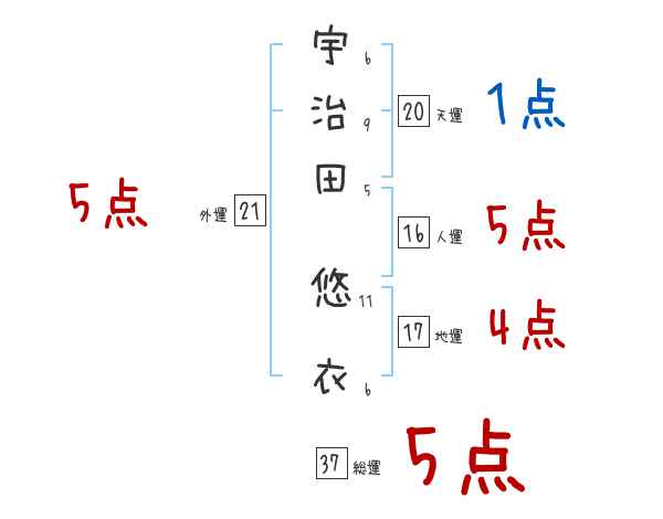 宇治田悠衣さんの画数の鑑定結果