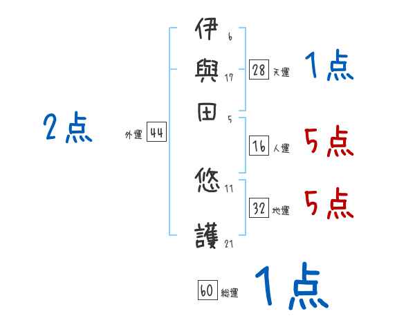 伊與田悠護さんの画数の鑑定結果