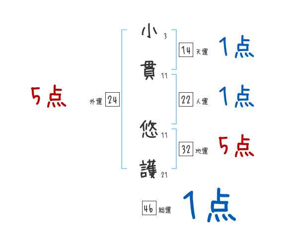 小貫悠護さんの画数の鑑定結果