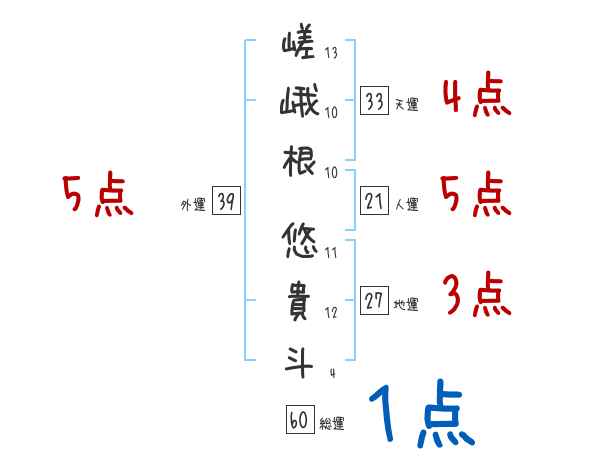 嵯峨根悠貴斗さんの画数の鑑定結果