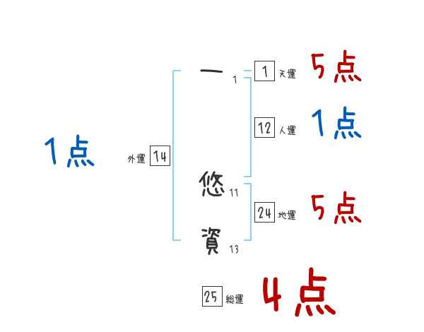 一悠資さんの画数の鑑定結果