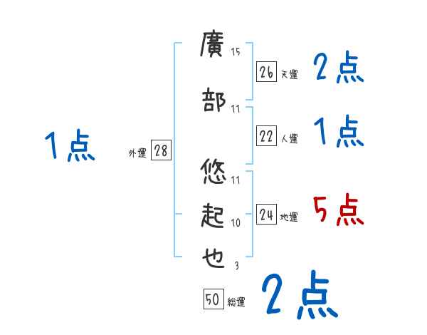 廣部悠起也さんの画数の鑑定結果
