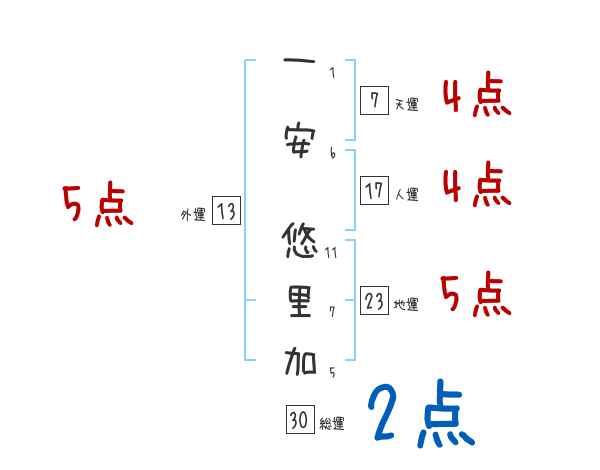 天運![]() | 一安悠里加さんの天運は7画の4つ星!強い意志や信念を持ち独立心が強い。自立する。 家系が持つ宿命的な運勢を表します。祖先から受け継いだ苗字ですので自分の力が及びません。家柄を象徴します。 |