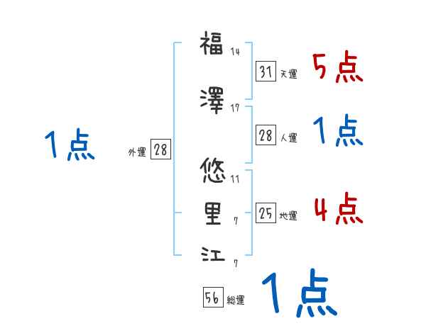 総運![]() | 福澤悠里江さんの総運は56画の1つ星!消極的で無気力になりがち。誠実な気持ちが必要でしょう。 あなたの人生を表す1番重要な運勢です。生涯を通じて影響する総合運となり、主に50歳以降の晩年期に影響を及ぼします。 |
