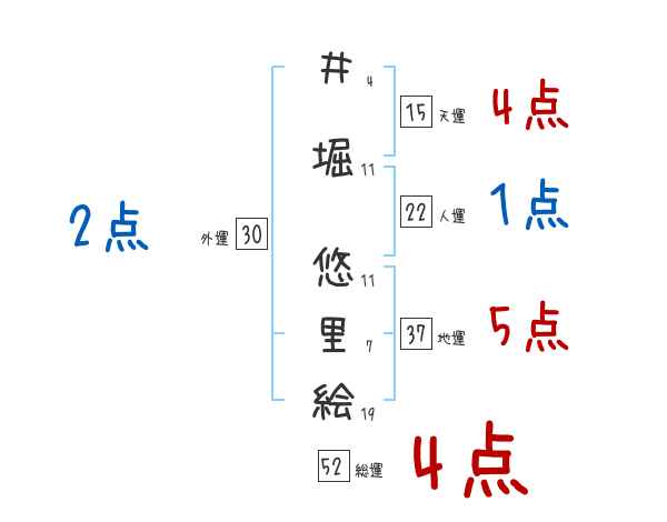 総運![]() | 井堀悠里絵さんの総運は52画の4つ星!先見性と独創性に優れ考える力がある。強運の持ち主。 あなたの人生を表す1番重要な運勢です。生涯を通じて影響する総合運となり、主に50歳以降の晩年期に影響を及ぼします。 |