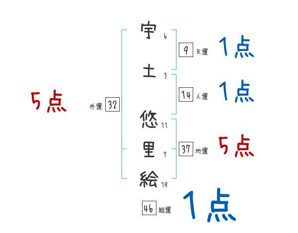 外運![]() | 宇土悠里絵さんの外運は32画の5つ星!柔軟性があり成功する。チャンスが多く金運が良い。 生活面を象徴する運勢です。外部から受ける影響力を表し、結婚運、家庭運や職場、環境への順応性を表します。 |