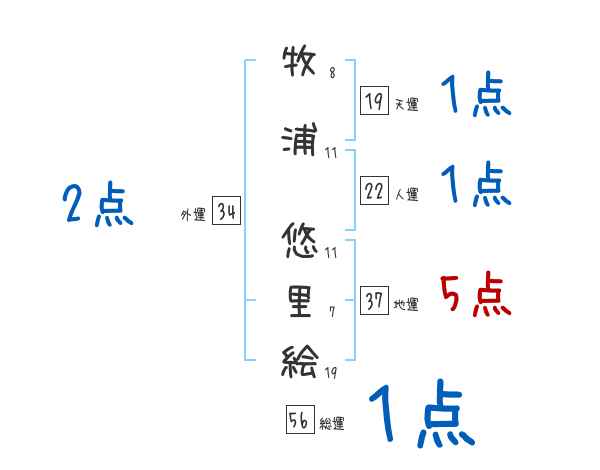 人運![]() | 牧浦悠里絵さんの人運は22画の1つ星!努力することが苦手ないっぽう手先が器用。芸術性にも優れる。 性格や才能などを表す2番目に重要な運勢です。人間関係や協調性、社会的な成功に影響します。主に20歳から50歳ぐらいまでの中年期の運勢を表します。 |