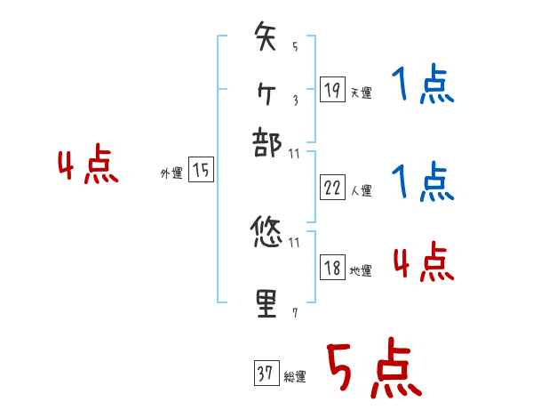 矢ヶ部悠里さんの画数の鑑定結果