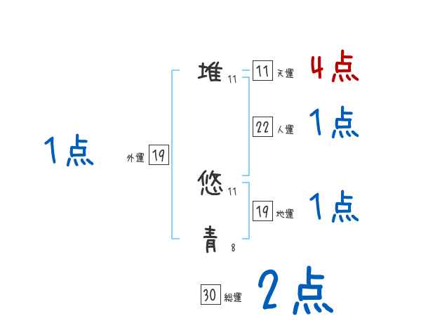 堆悠青さんの画数の鑑定結果