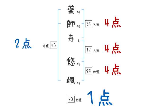 薬師寺悠颯さんの画数の鑑定結果