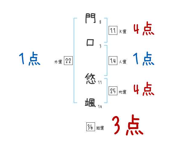 門口悠颯さんの画数の鑑定結果