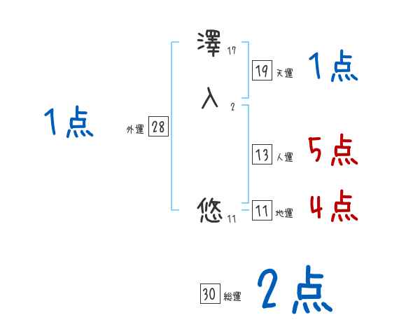 天運![]() | 澤入悠さんの天運は19画の1つ星!優れた才能を持ちますが、協調性が足りないことも。周りの人と協力する事を意識しましょう。 家系が持つ宿命的な運勢を表します。祖先から受け継いだ苗字ですので自分の力が及びません。家柄を象徴します。 |