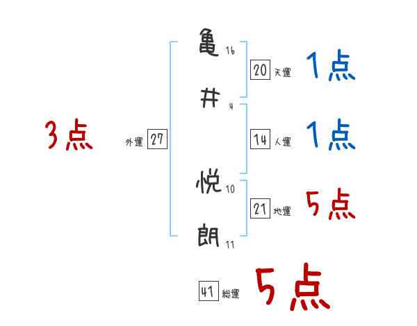 亀井悦朗さんの画数の鑑定結果