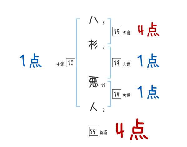 八杉悪人さんの画数の鑑定結果