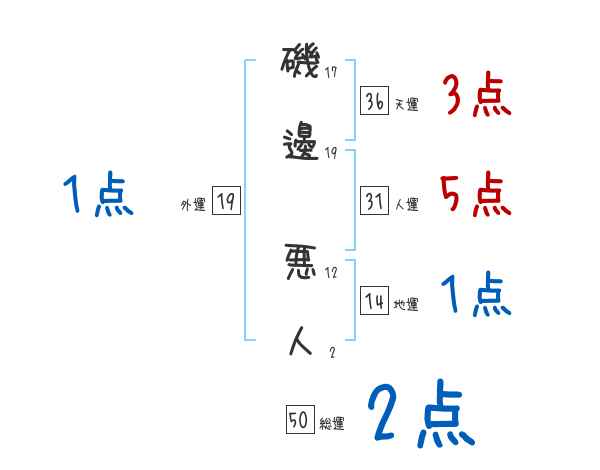 磯邊悪人さんの外運は19画の1つ星