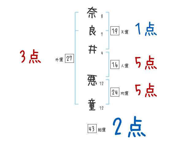 奈良井悪童さんの画数の鑑定結果