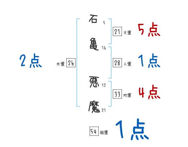 天運![]() | 石亀悪魔さんの天運は21画の5つ星!統率力がある。独立し成功する。名誉を手に入れる。 家系が持つ宿命的な運勢を表します。祖先から受け継いだ苗字ですので自分の力が及びません。家柄を象徴します。 |