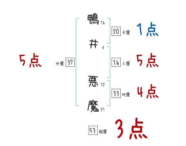 鴨井悪魔さんの画数の鑑定結果