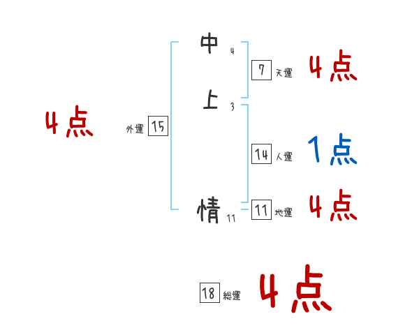 外運![]() | 中上情さんの外運は15画の4つ星!人徳があり出世する。順調に物事を進め円満な人生。 生活面を象徴する運勢です。外部から受ける影響力を表し、結婚運、家庭運や職場、環境への順応性を表します。 |