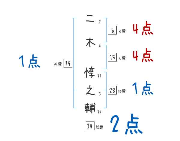 外運![]() | 二木惇之輔さんの外運は19画の1つ星!優れた才能を持ちますが、協調性が足りないことも。周りの人と協力する事を意識しましょう。 生活面を象徴する運勢です。外部から受ける影響力を表し、結婚運、家庭運や職場、環境への順応性を表します。 |
