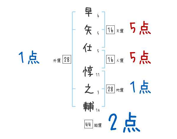 天運![]() | 早矢仕惇之輔さんの天運は16画の5つ星!人望が厚く大きく発展する。逆転成功が見える。 家系が持つ宿命的な運勢を表します。祖先から受け継いだ苗字ですので自分の力が及びません。家柄を象徴します。 |