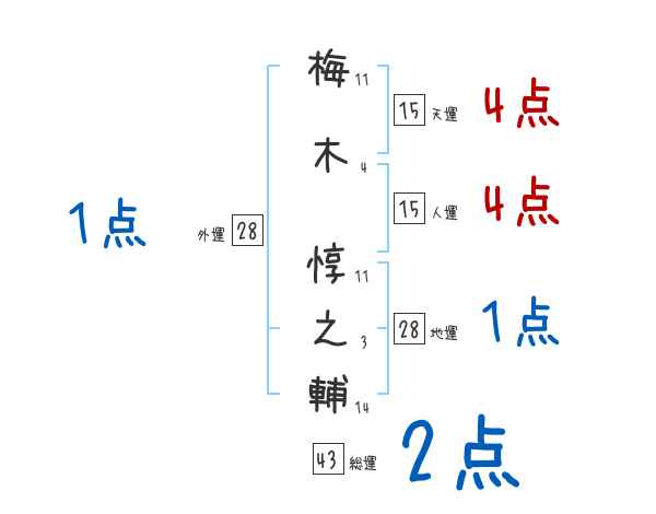 梅木惇之輔さんの画数の鑑定結果