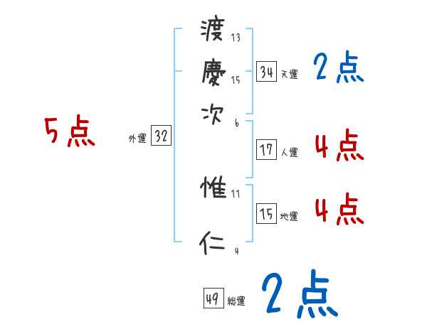 渡慶次惟仁さんの画数の鑑定結果