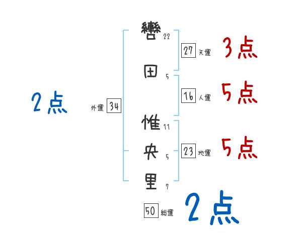 轡田惟央里さんの画数の鑑定結果