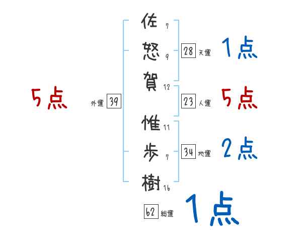 佐怒賀惟歩樹さんの画数の鑑定結果