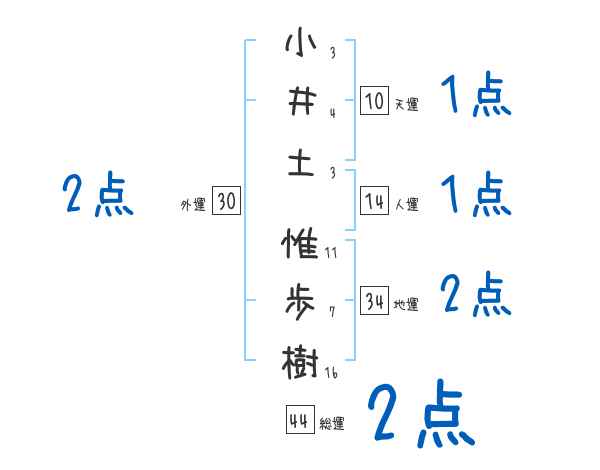 小井土惟歩樹さんの画数の鑑定結果