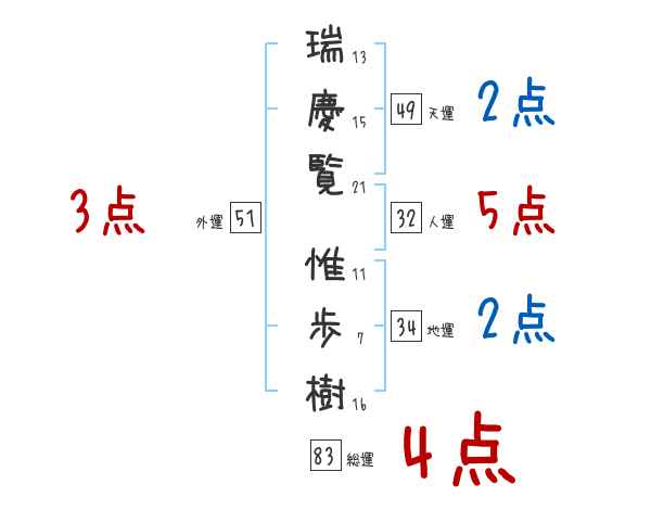 瑞慶覧惟歩樹さんの画数の鑑定結果