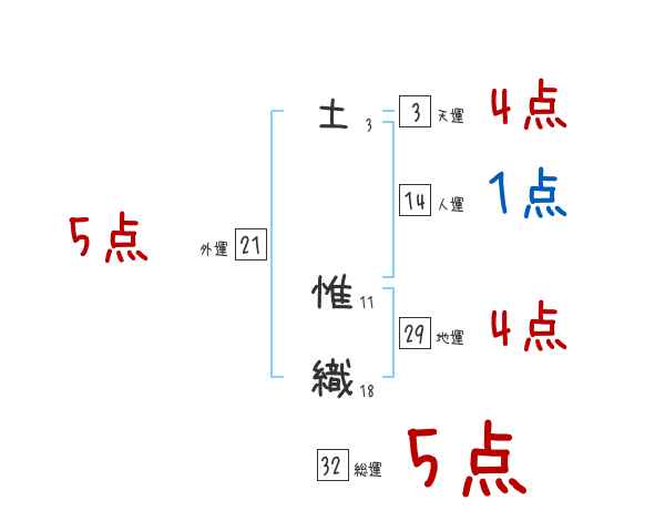 土惟織さんの画数の鑑定結果