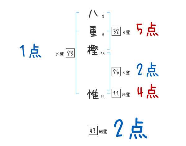 八重樫惟さんの画数の鑑定結果