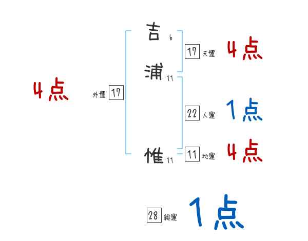 吉浦惟さんの画数の鑑定結果