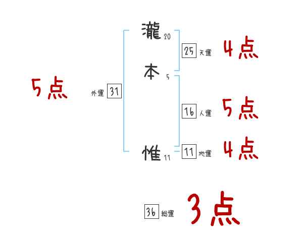 瀧本惟さんの画数の鑑定結果
