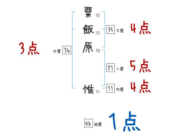 粟飯原惟さんの画数の鑑定結果