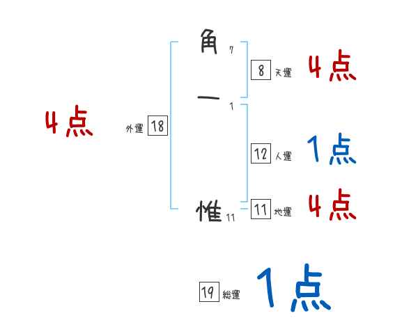 外運![]() | 角一惟さんの外運は18画の4つ星!情熱的で剛気。忍耐力があり信頼される。 生活面を象徴する運勢です。外部から受ける影響力を表し、結婚運、家庭運や職場、環境への順応性を表します。 |