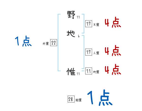 野地惟さんの画数の鑑定結果