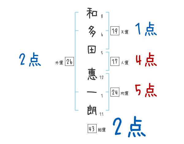 和多田惠一朗さんの画数の鑑定結果