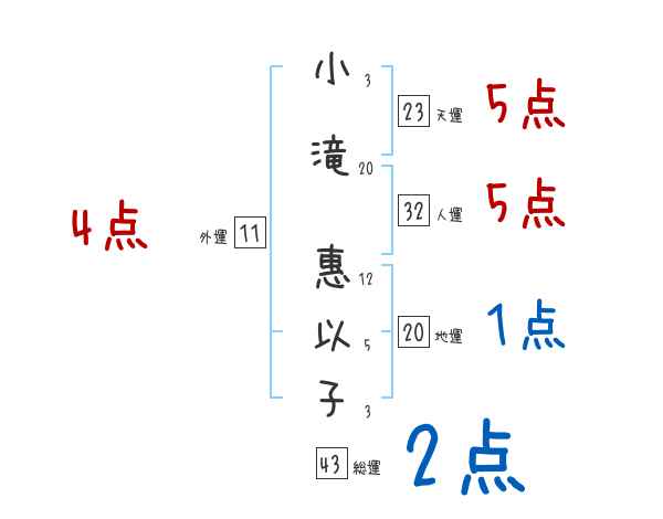 小滝惠以子さんの画数の鑑定結果