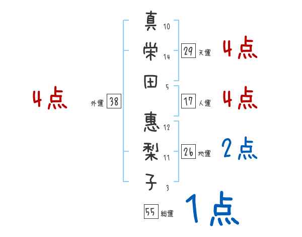 真栄田惠梨子さんの画数の鑑定結果