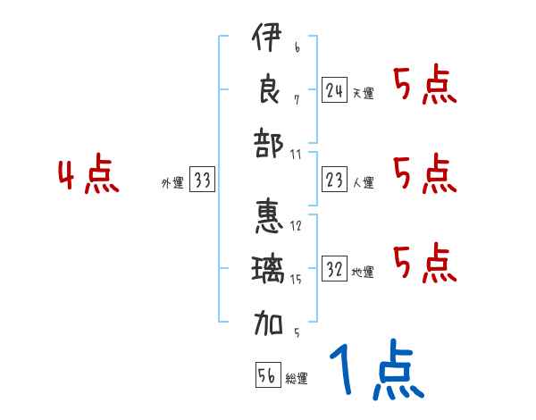 伊良部惠璃加さんの画数の鑑定結果