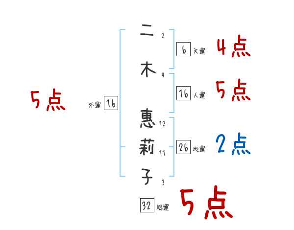 二木惠莉子さんの画数の鑑定結果
