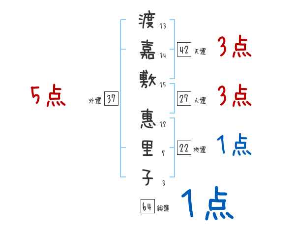 渡嘉敷惠里子さんの画数の鑑定結果