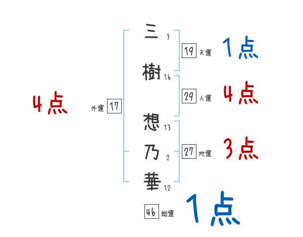 外運![]() | 三樹想乃華さんの外運は17画の4つ星!積極的な行動力。地位を気づき財産を手に入れる。純粋な心と直感力。 生活面を象徴する運勢です。外部から受ける影響力を表し、結婚運、家庭運や職場、環境への順応性を表します。 |