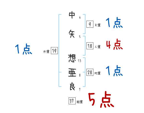 中矢想亜良さんの画数の鑑定結果