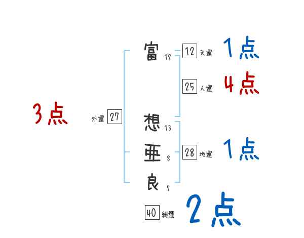 富想亜良さんの画数の鑑定結果
